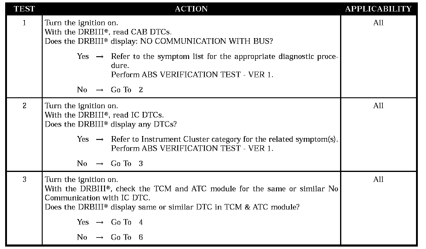 - NO COMMUNICATION WITH BUS DTC PRESENT