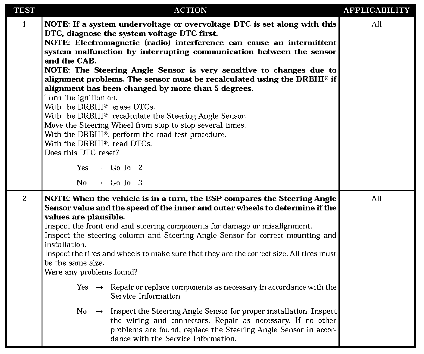 STEERING ANGLE SENSOR INTERMITTENT DTC