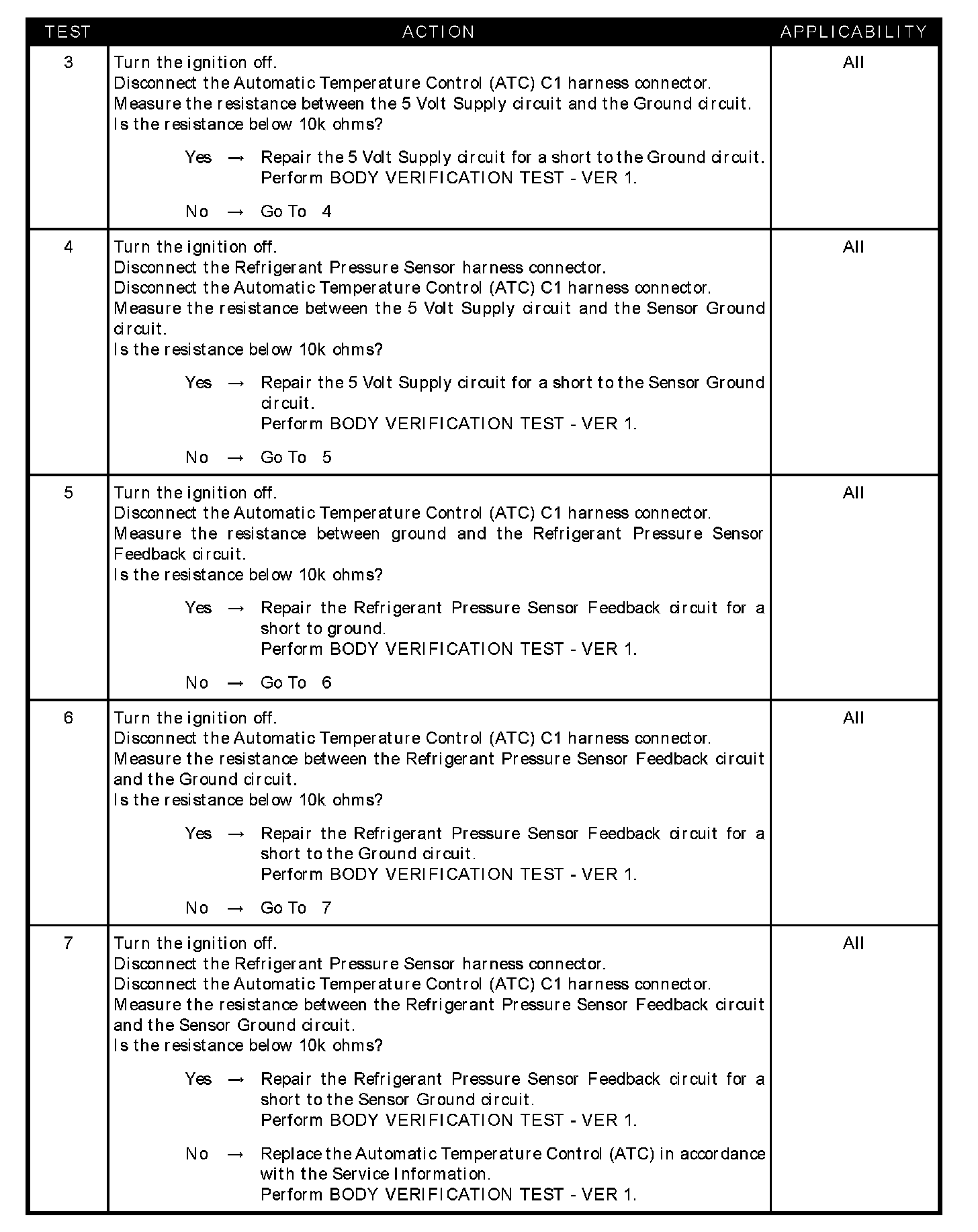 - Refrigerant pressure sensor feedback circuit shorted to sensor ground circuit