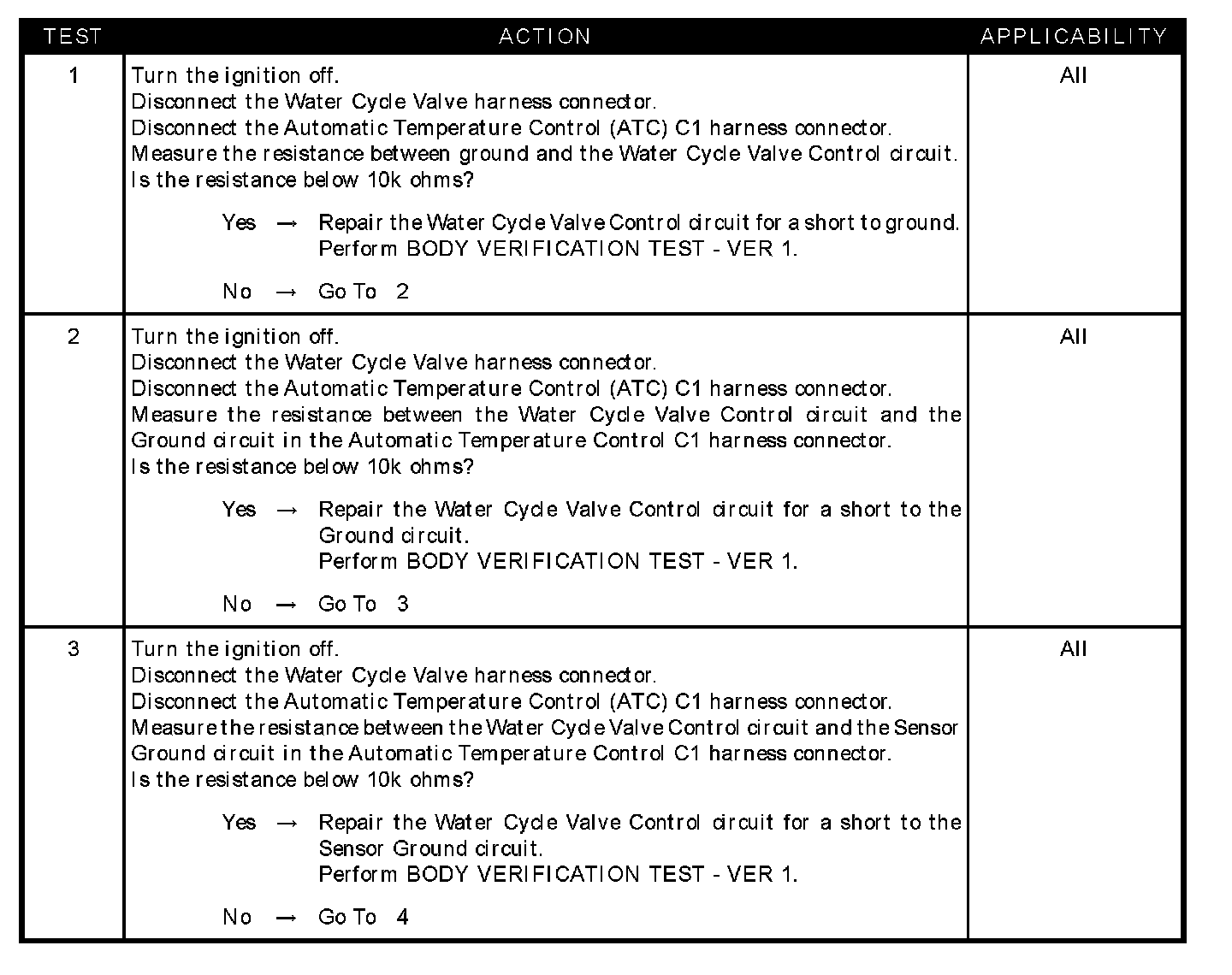 - Water cycle valve control circuit shorted to ground circuit