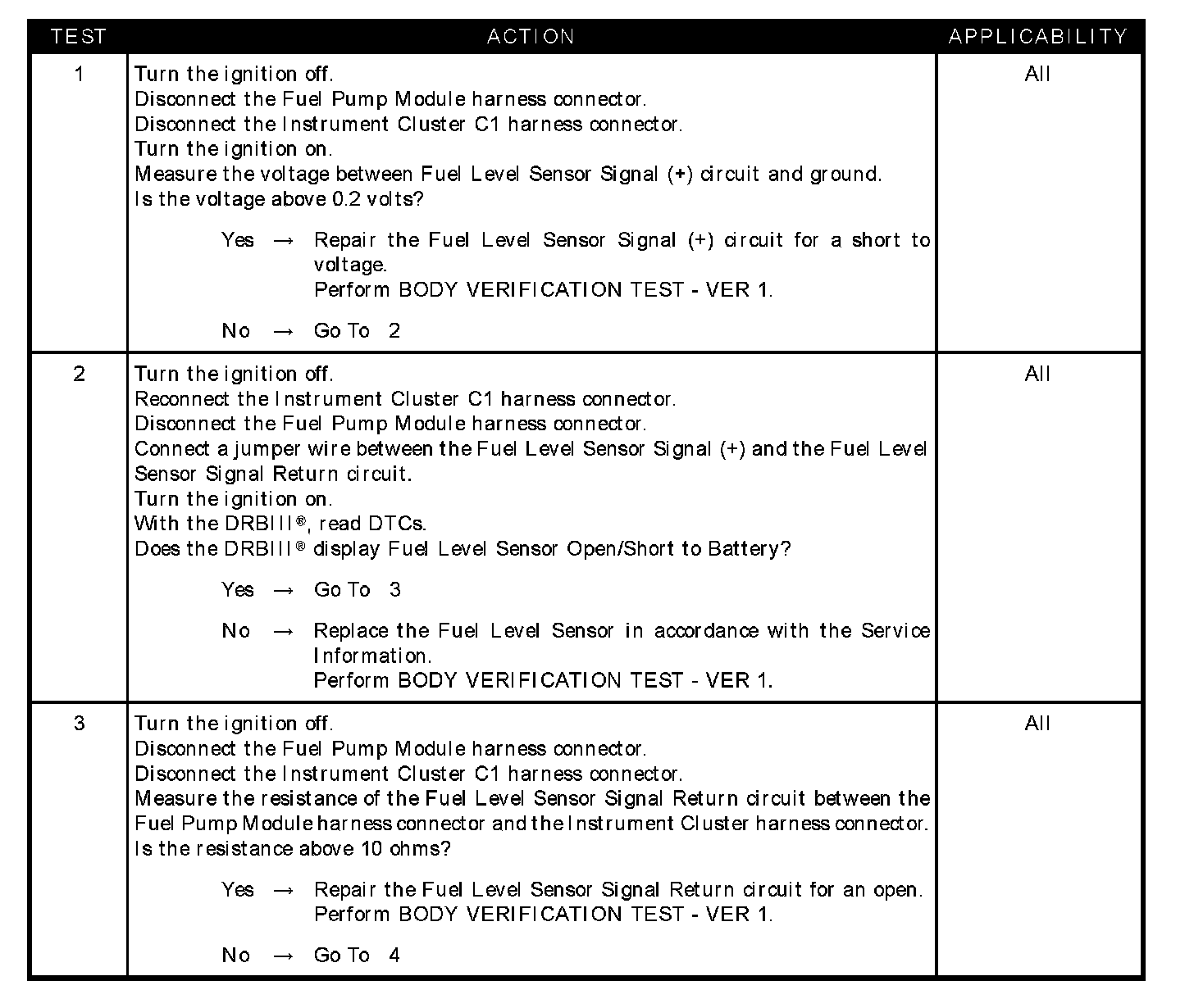 FUEL LEVEL SENSOR OPEN/SHORT TO BATTERY