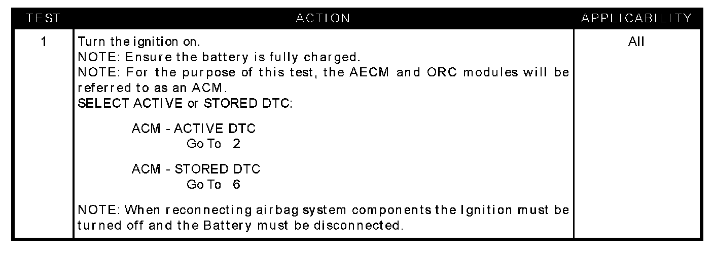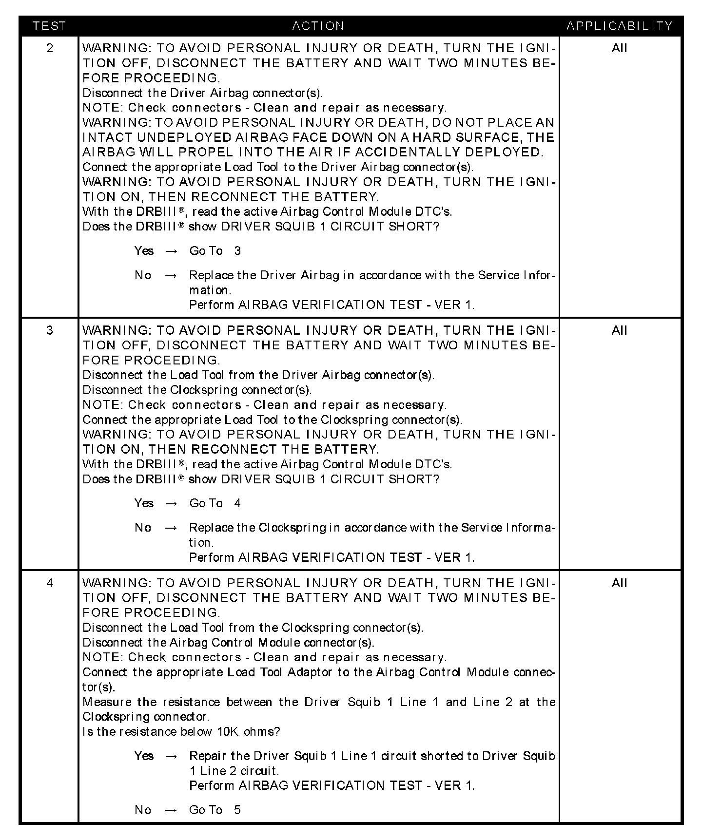 With the ignition on, the ACM monitors the resistance of the Driver Squib 1 circuits.