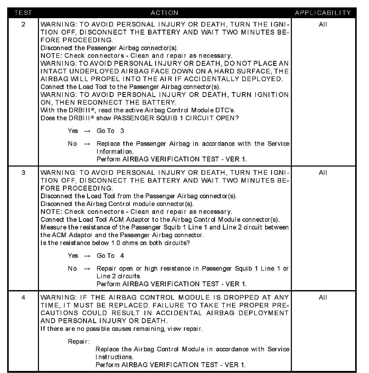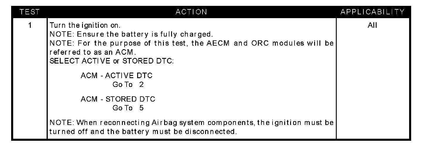 With the ignition on, the ACM monitors the resistance of the Passenger Squib 1 circuits.
