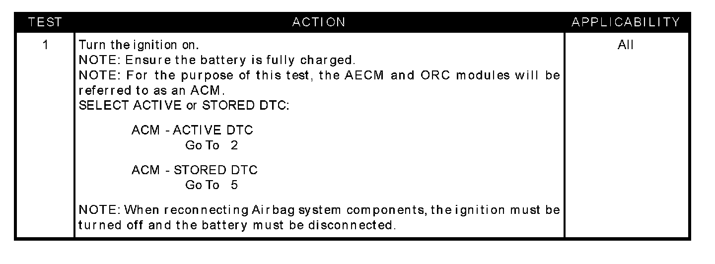 With the ignition on, the ACM monitors the voltage on the Passenger Squib 1 circuits.