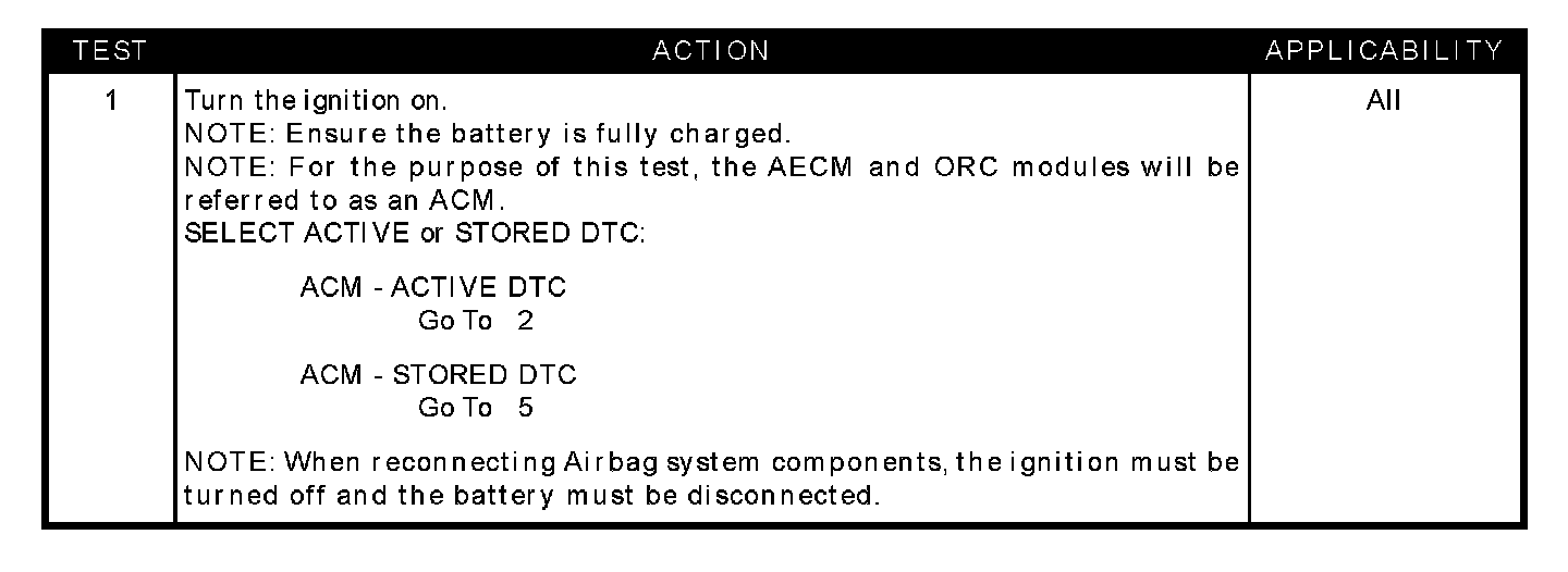 With the ignition on, the ACM monitors the resistance of the Passenger Squib 1 circuits.