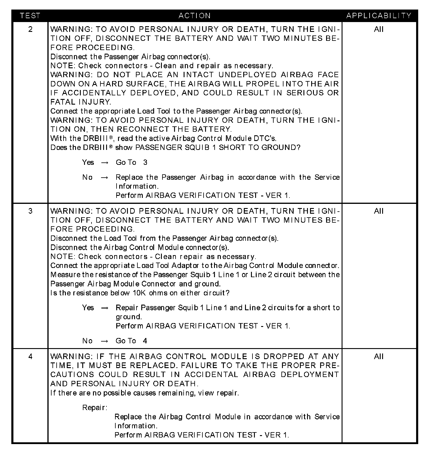 PASSENGER SQUIB 1 SHORT TO GROUND