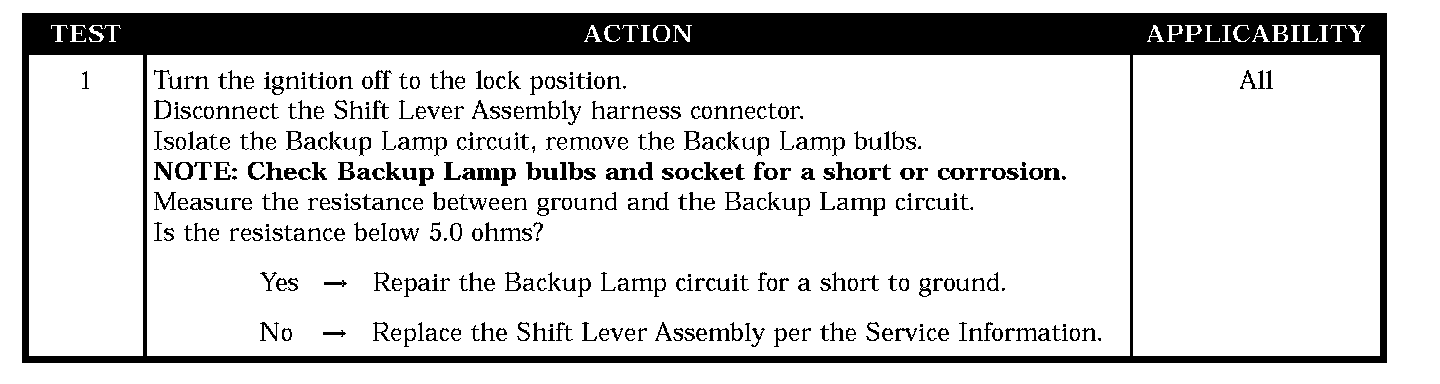 BACKUP LAMP CIRCUIT SHORT TO GROUND