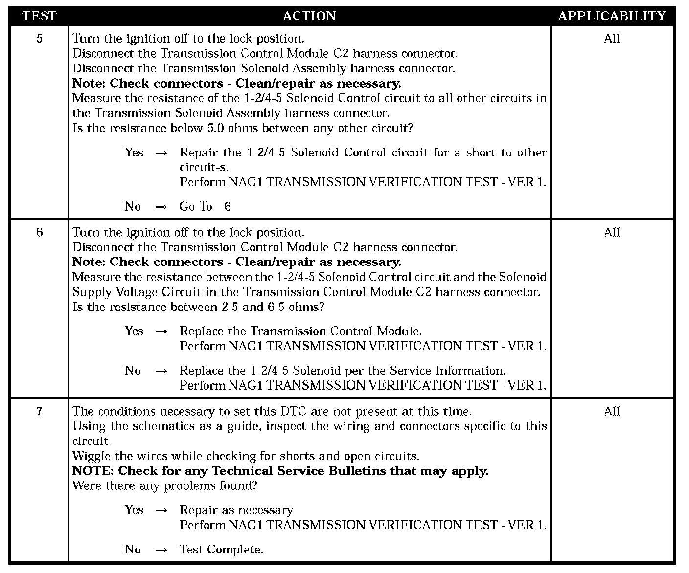 Test Note: All symptoms listed above are diagnosed using the same tests. The title for the tests will be 1 2/4 5 SOLENOID CIRCUIT.