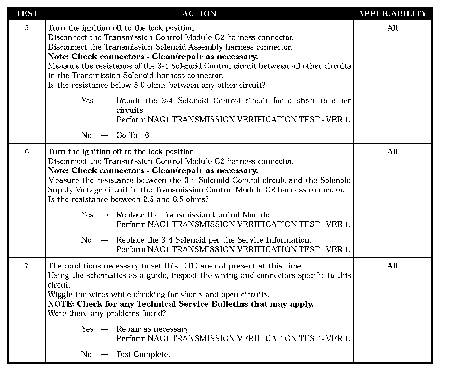 Test Note: All symptoms listed above are diagnosed using the same tests. The title for the tests will be 3 4 SOLENOID CIRCUIT.