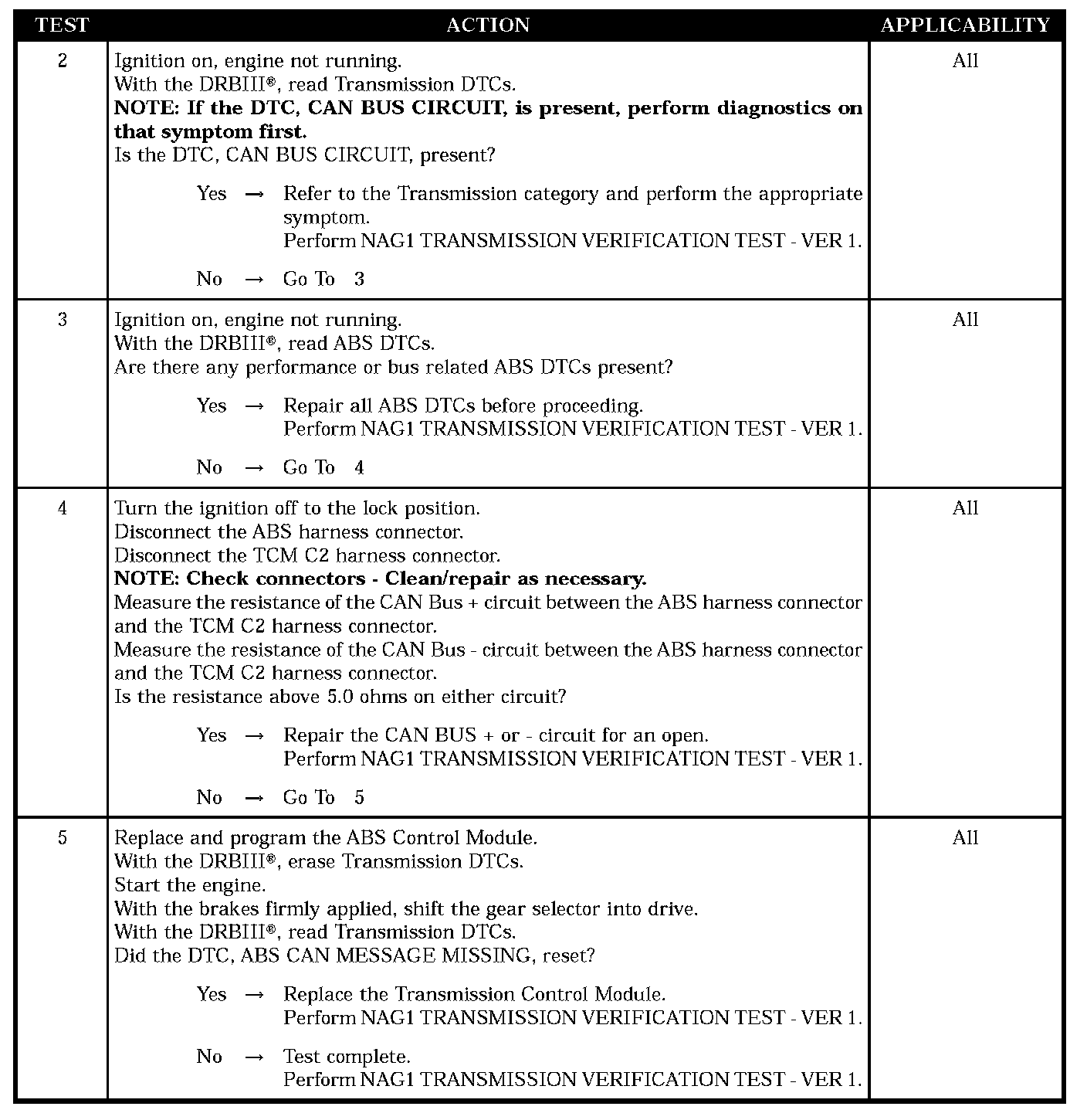 Symptom: ABS CAN MESSAGE MISSINGTest 1: