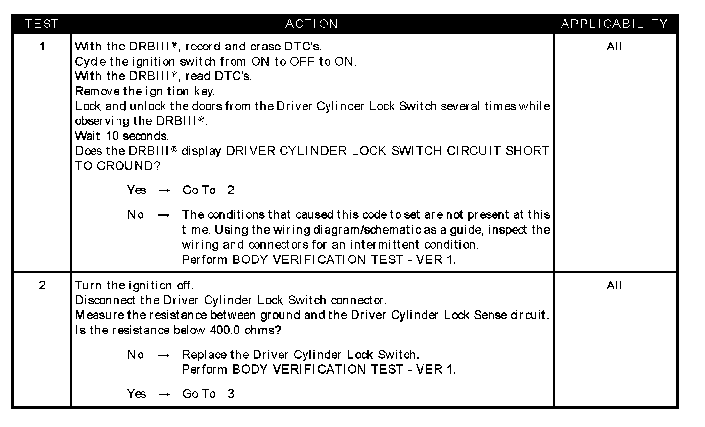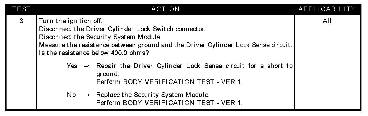 DRIVER CYLINDER LOCK SWITCH CIRCUIT SHORT TO GROUND