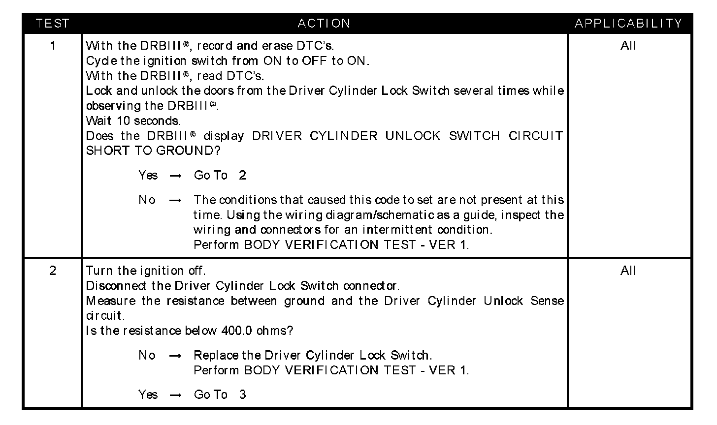 DRIVER CYLINDER UNLOCK SWITCH CIRCUIT SHORT TO GROUND