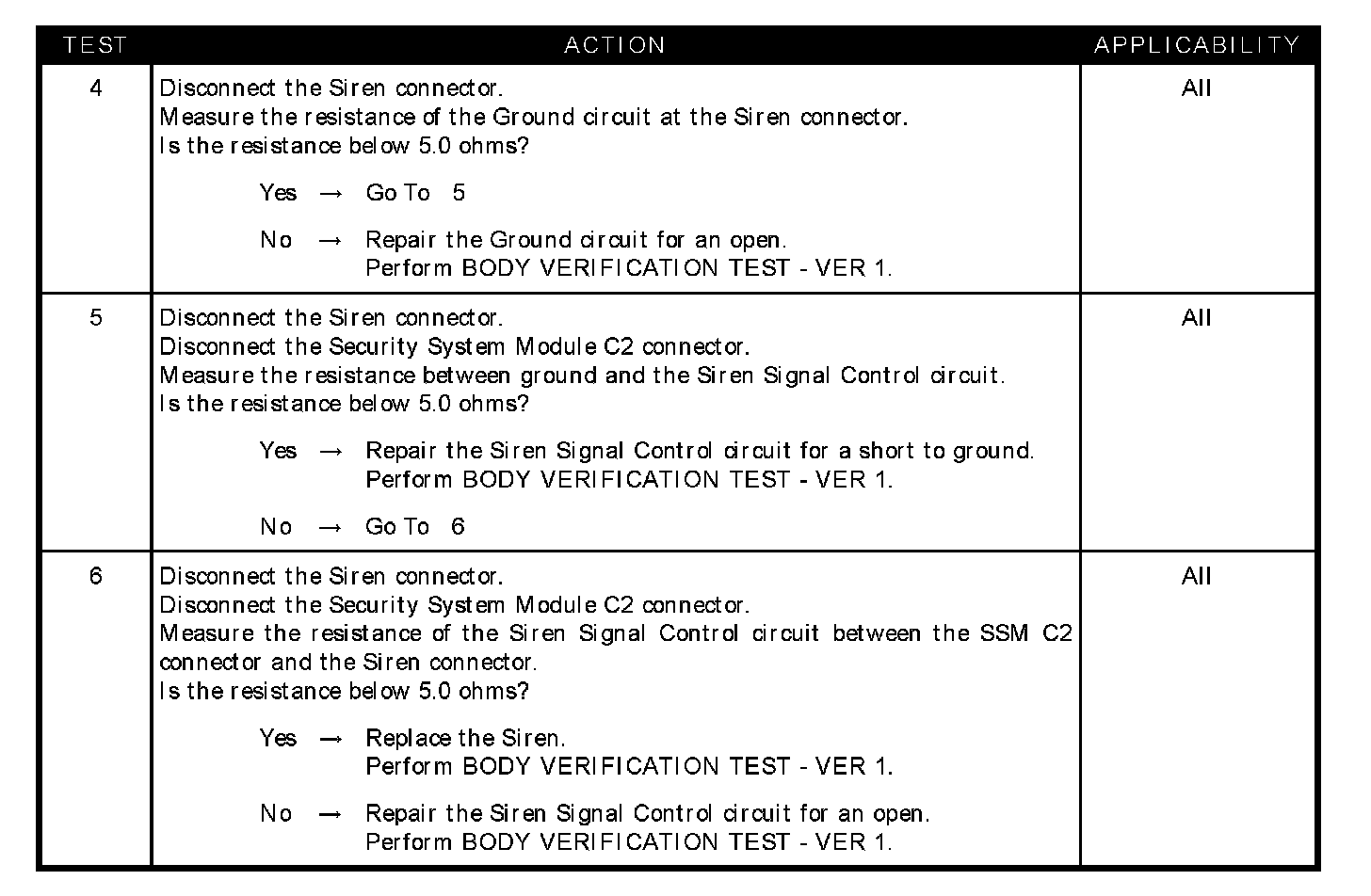 SIREN CIRCUIT OPEN/SHORTED TO GROUND