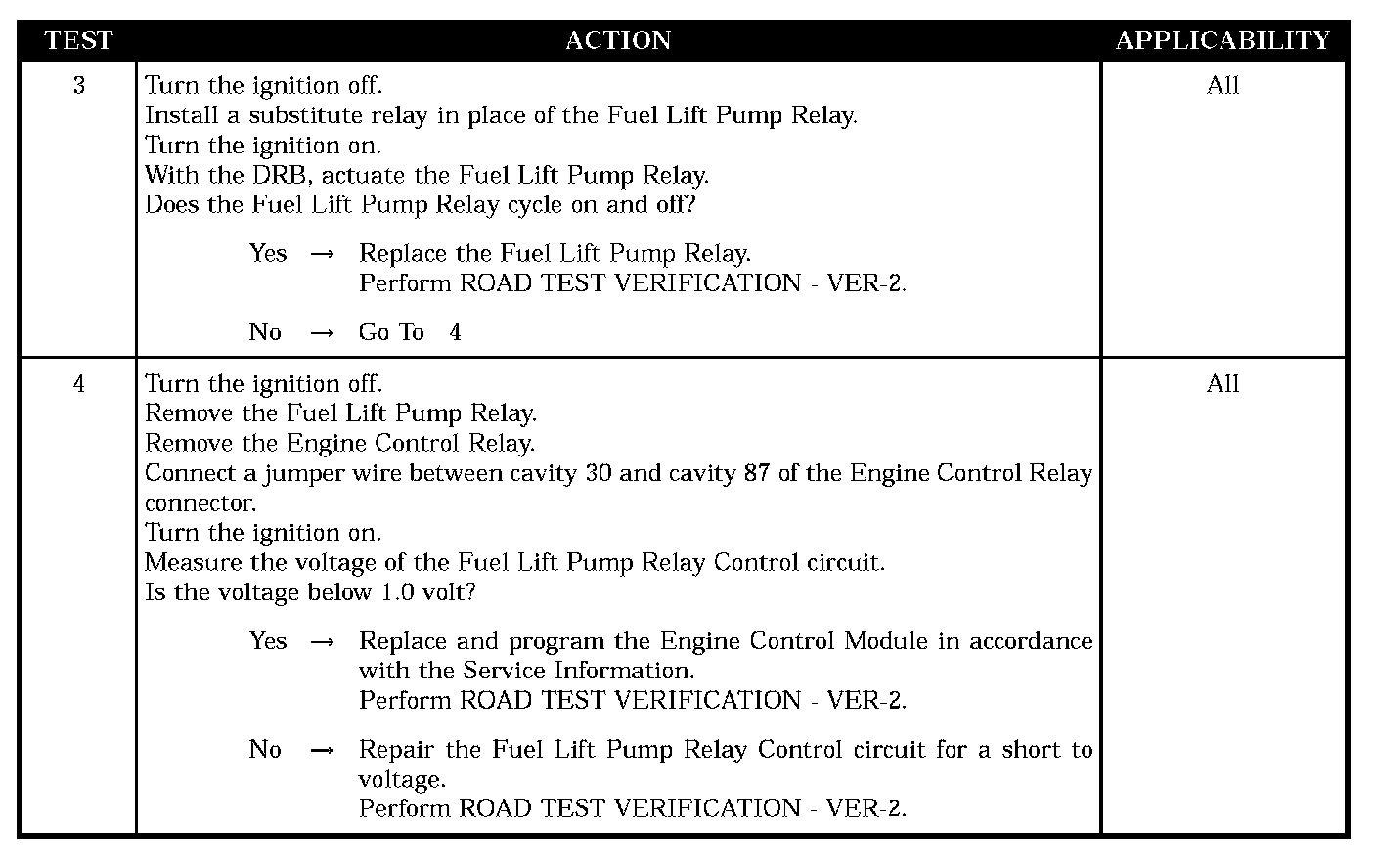 - Fuel lift pump relay control circuit shorted to voltage