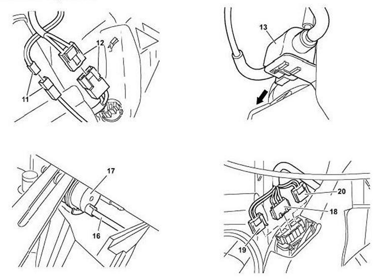 8. Release and disconnect plugs (18, 19, 20)