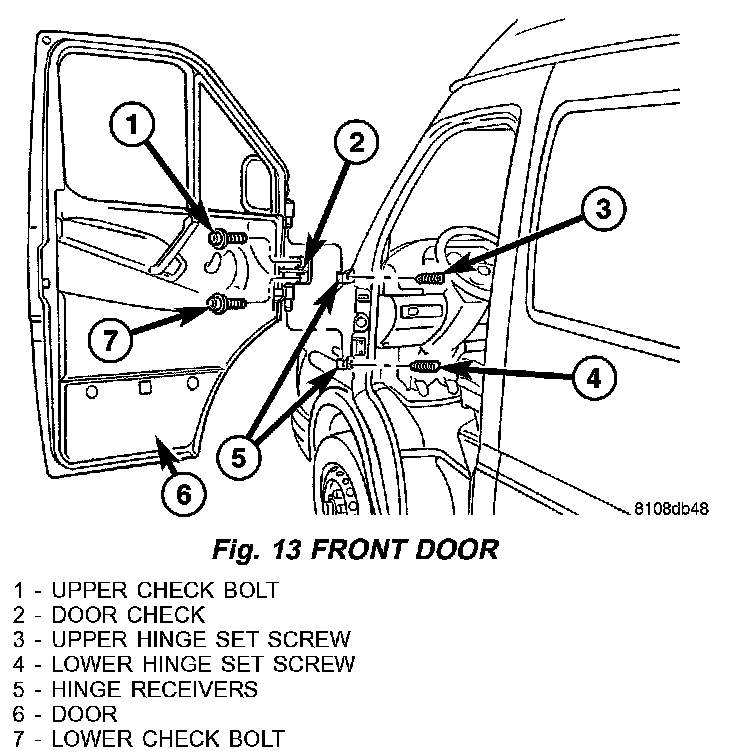 4. Remove hinge bolts and remove hinge. (Fig. 14)