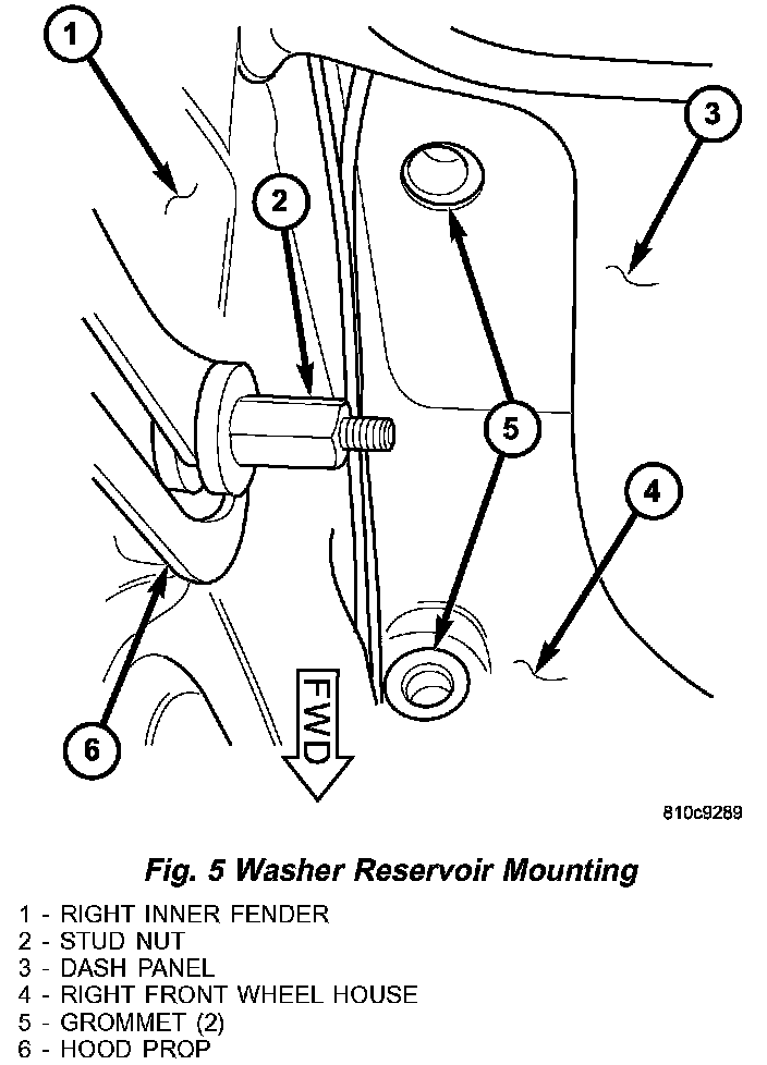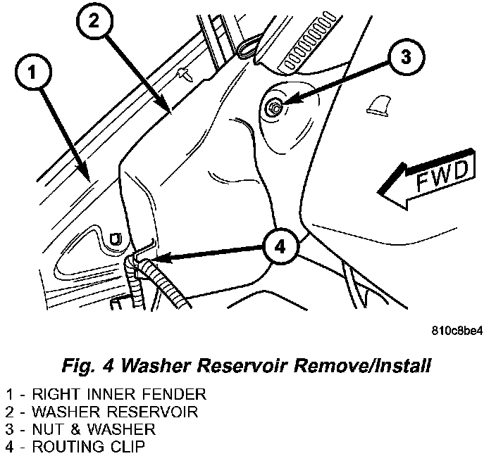 4. Remove nut and position the washer bottle aside. (Fig. 4)