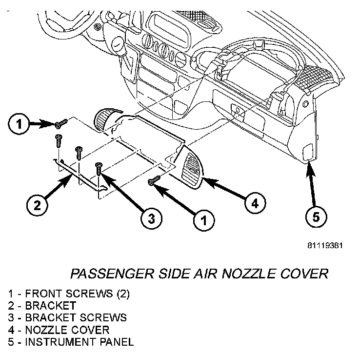 4. Remove screws and remove passenger side air nozzle cover.