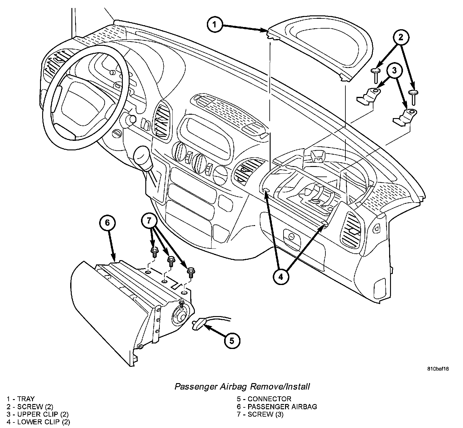 WARNING: ON VEHICLES EQUIPPED WITH AIR-BAGS, DISABLE THE AIRBAG SYSTEM BEFORE ATTEMPTING ANY STEERING WHEEL, STEERING COLUMN, SEAT BELT TENSIONER, OR INSTRUMENT PANEL COMPONENT DIAGNOSIS OR SERVICE. DISCONNECT AND ISOLATE THE BATTERY NEGATIVE (GROUND) CABLE, THEN WAIT TWO MINUTES FOR THE AIRBAG SYSTEM CAPACITOR TO DISCHARGE BEFORE PERFORMING FURTHER DIAGNOSIS OR SERVICE. THIS IS THE ONLY SURE WAY TO DISABLE THE AIRBAG SYSTEM. FAILURE TO TAKE THE PROPER PRECAUTIONS COULD RESULT IN ACCIDENTAL AIRBAG DEPLOYMENT AND POSSIBLE PERSONAL INJURY.REMOVAL