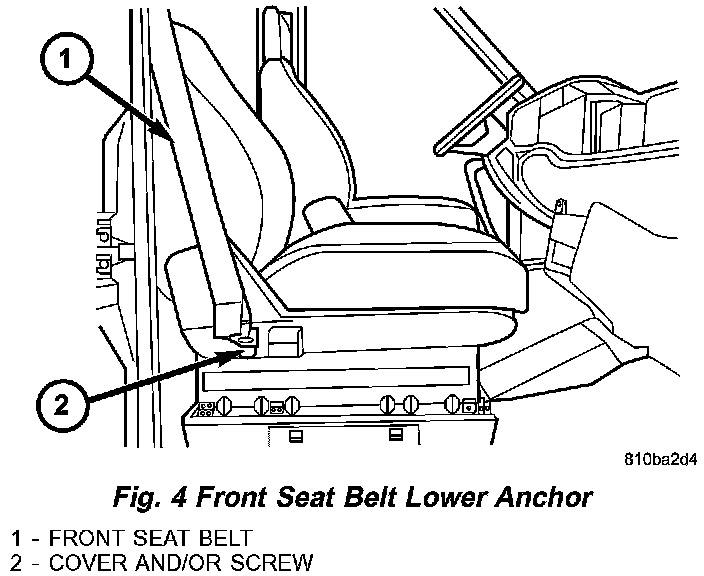 1. Remove the lower seat belt anchor bolt. (Fig. 4)