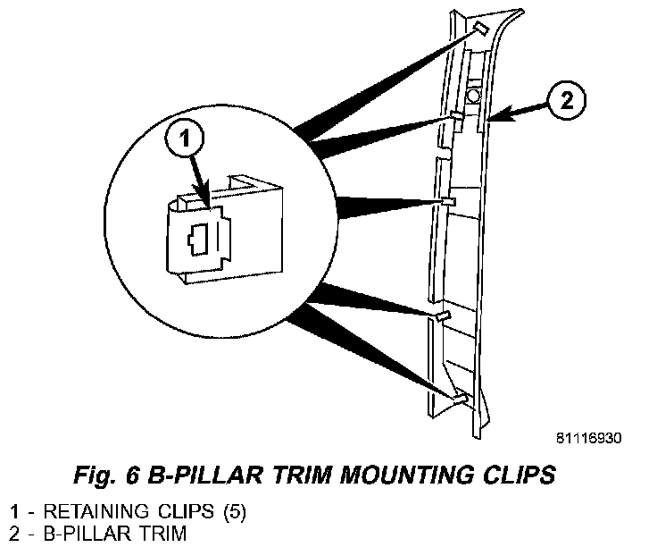 3. Using a trim stick C-4755 or equivalent, release the trim clips and remove the trim. (Fig. 6)