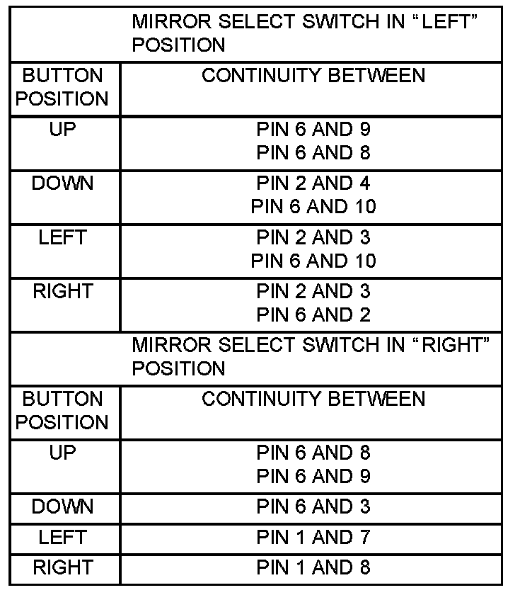 Power Mirror Switch: Testing and Inspection