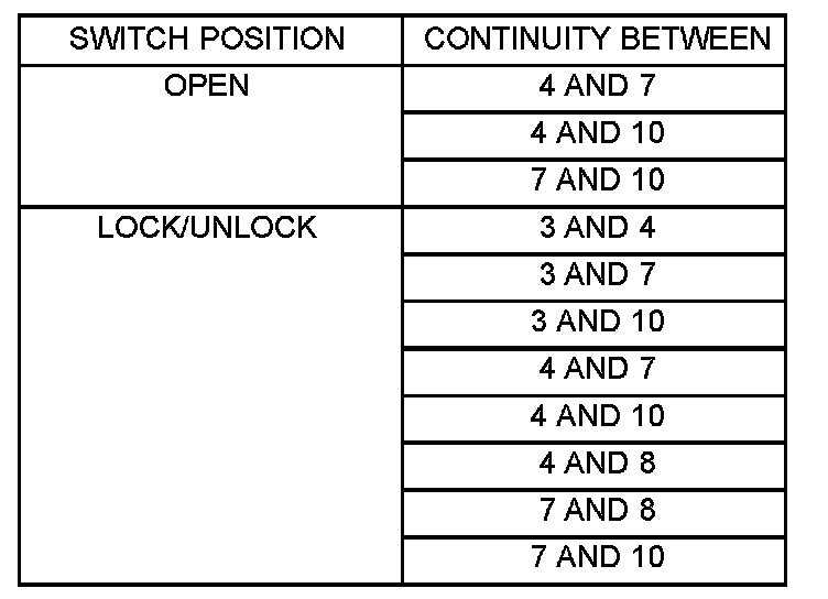 Power Door Lock Switch: Testing and Inspection