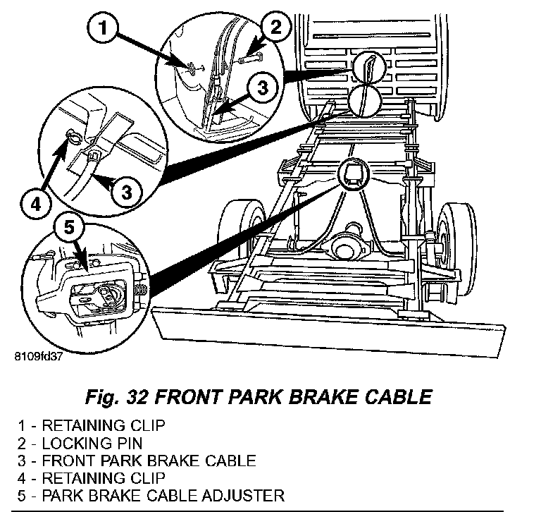 4. Reconnect the front park brake cable to the pulley unit (Fig. 32).
