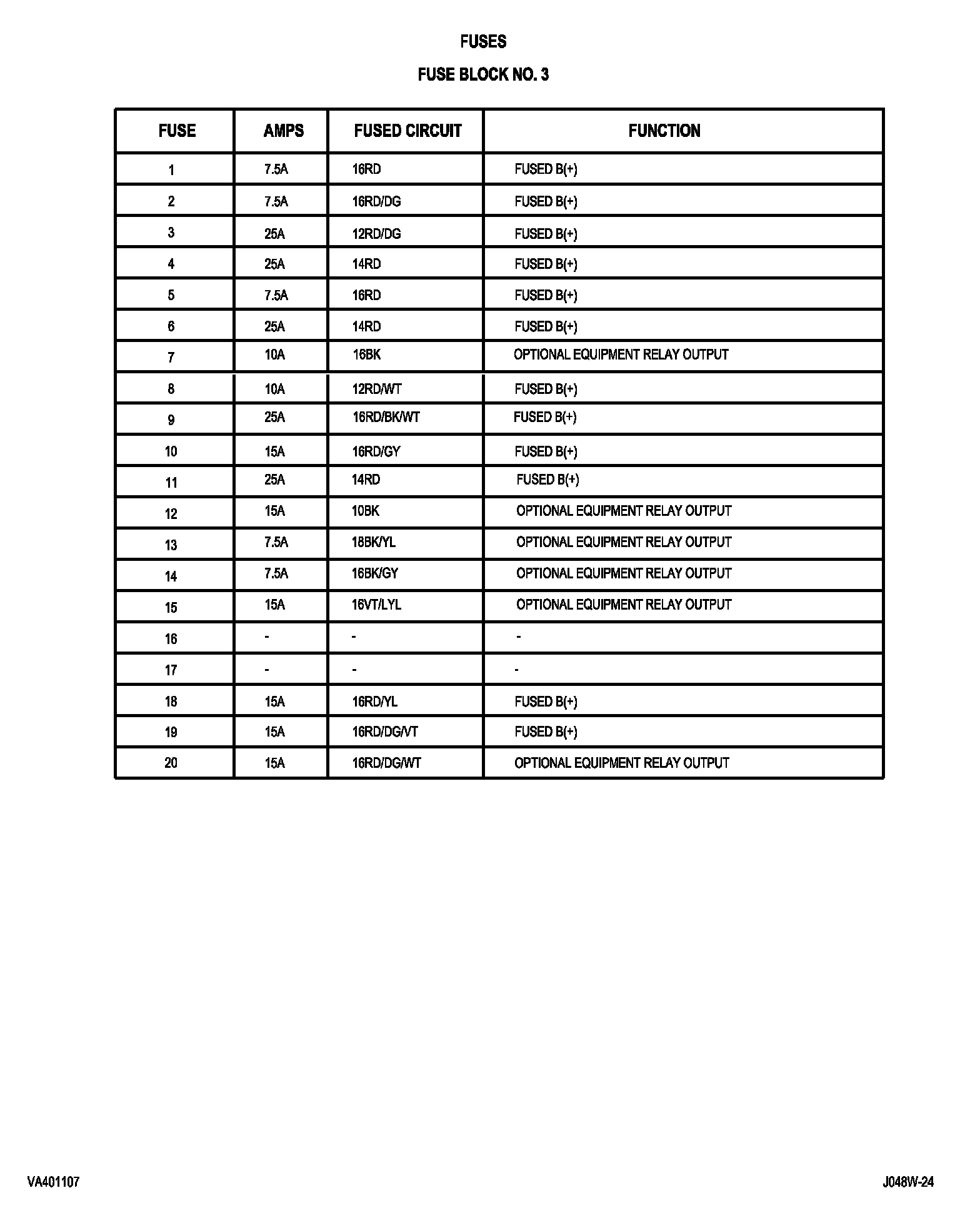 Fuses (Fuse Block No. 3):