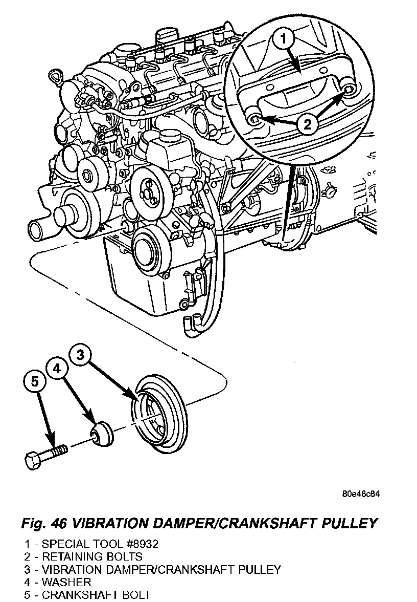 5. Remove the belt pulley/vibration damper (Fig. 46).