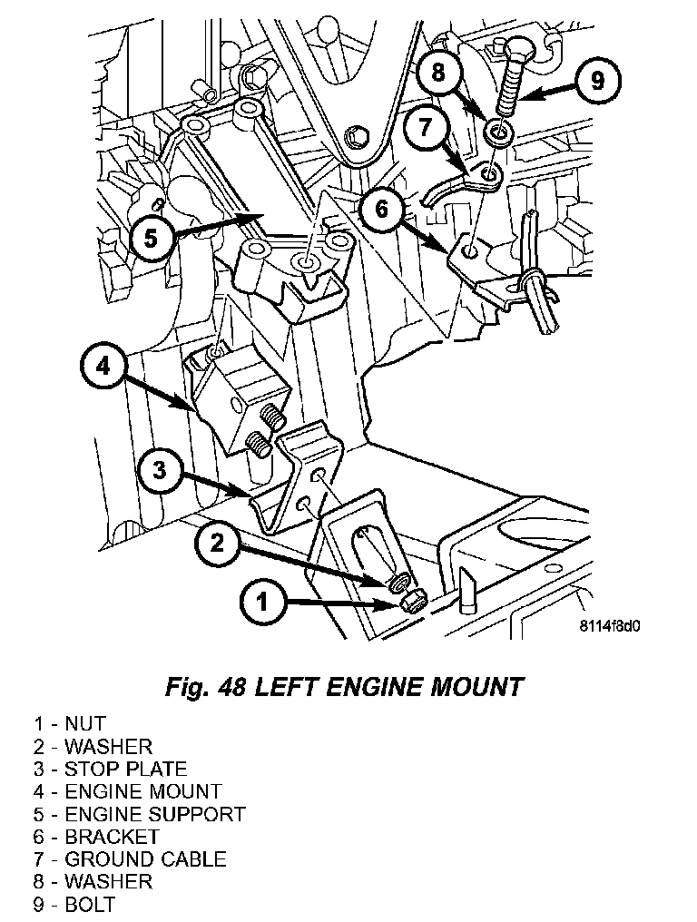 5. Hand tighten the engine support to engine mount bolt (Fig. 48).