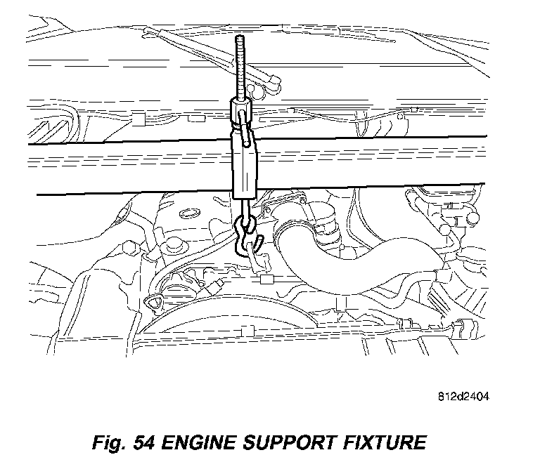 5. Connect engine support fixture #8534 using adaptors #853416, to the engine lifting eye and raise engine slightly (Fig. 54).
