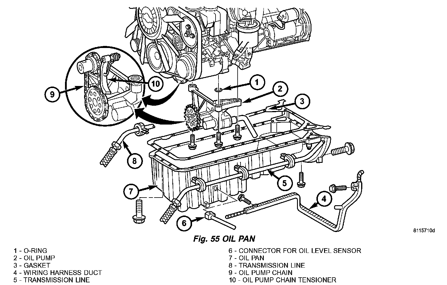 3. Remove the wiring harness duct from the oil pan bolts and position out of the way.