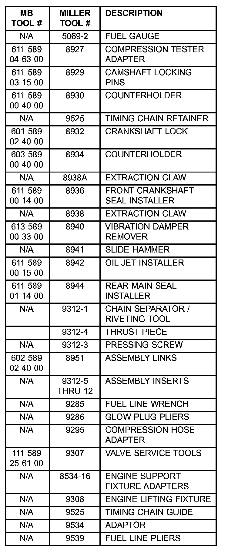 SPECIAL TOOL CROSS REFERENCE CHART
