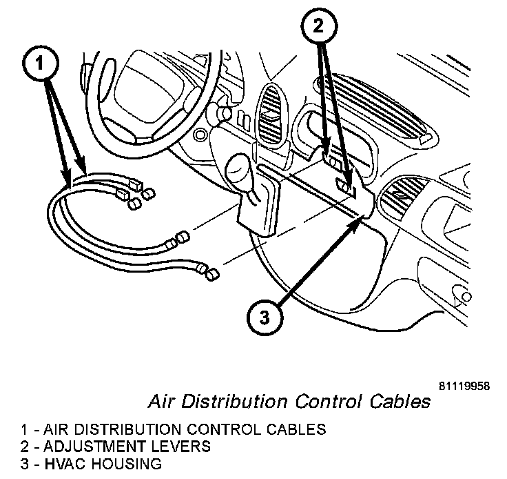 The air distribution control cables (mode door cables) can be removed and installed without having to remove the instrument panel from the vehicle