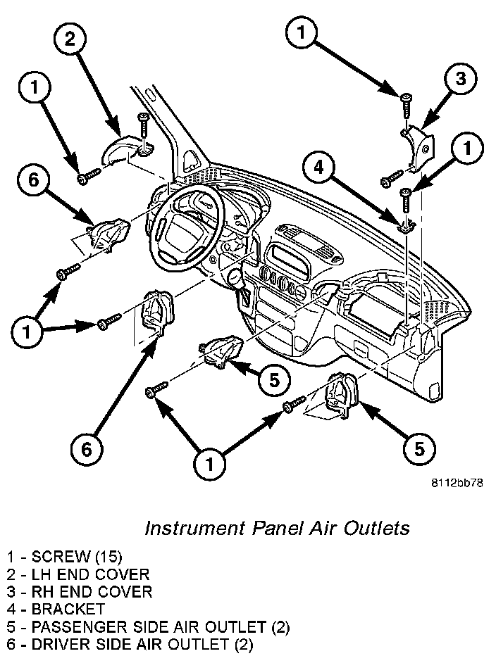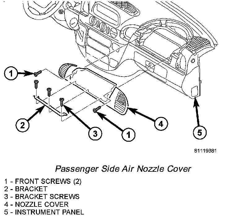 3. If servicing the passenger side air outlets, remove the passenger side airbag.