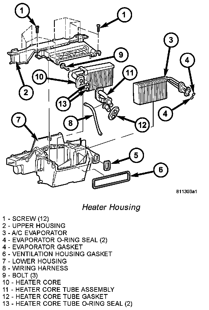 All vehicles are also equipped with a common heater housing mounted under the instrument panel which includes: