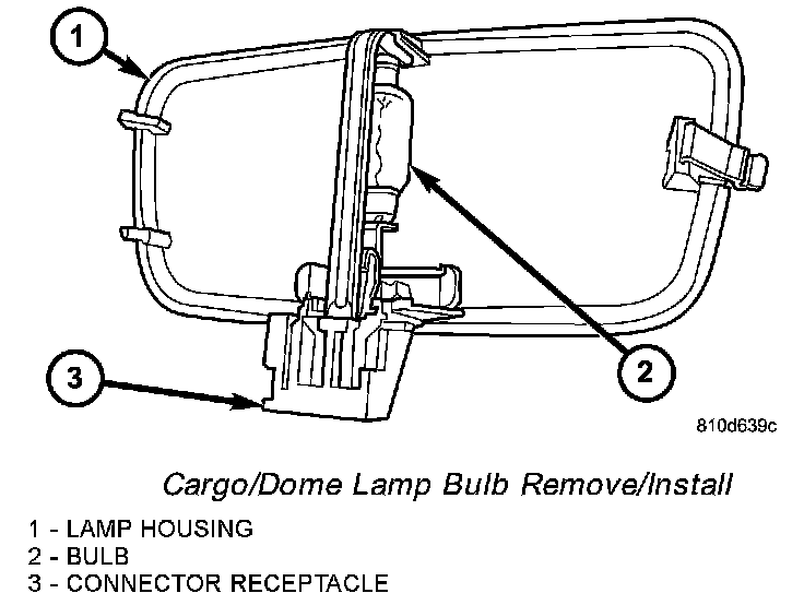 2. Remove the cargo/dome lamp unit from its mounting location, but do not disconnect the vehicle wire harness from the lamp connector receptacle.