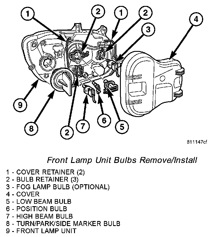 Front Lamp Unit Bulbs Remove/Install: