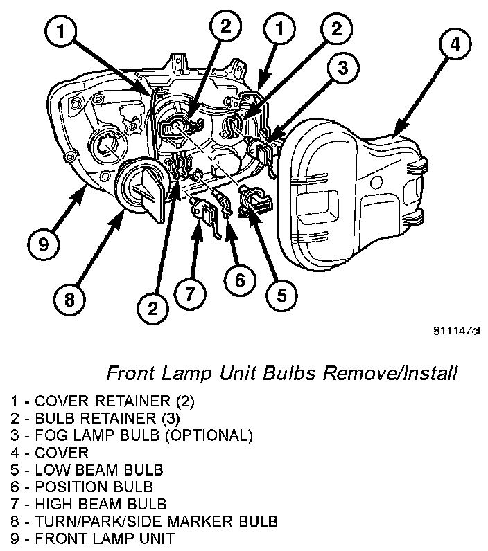 Front Lamp Unit Bulbs Remove/Install: