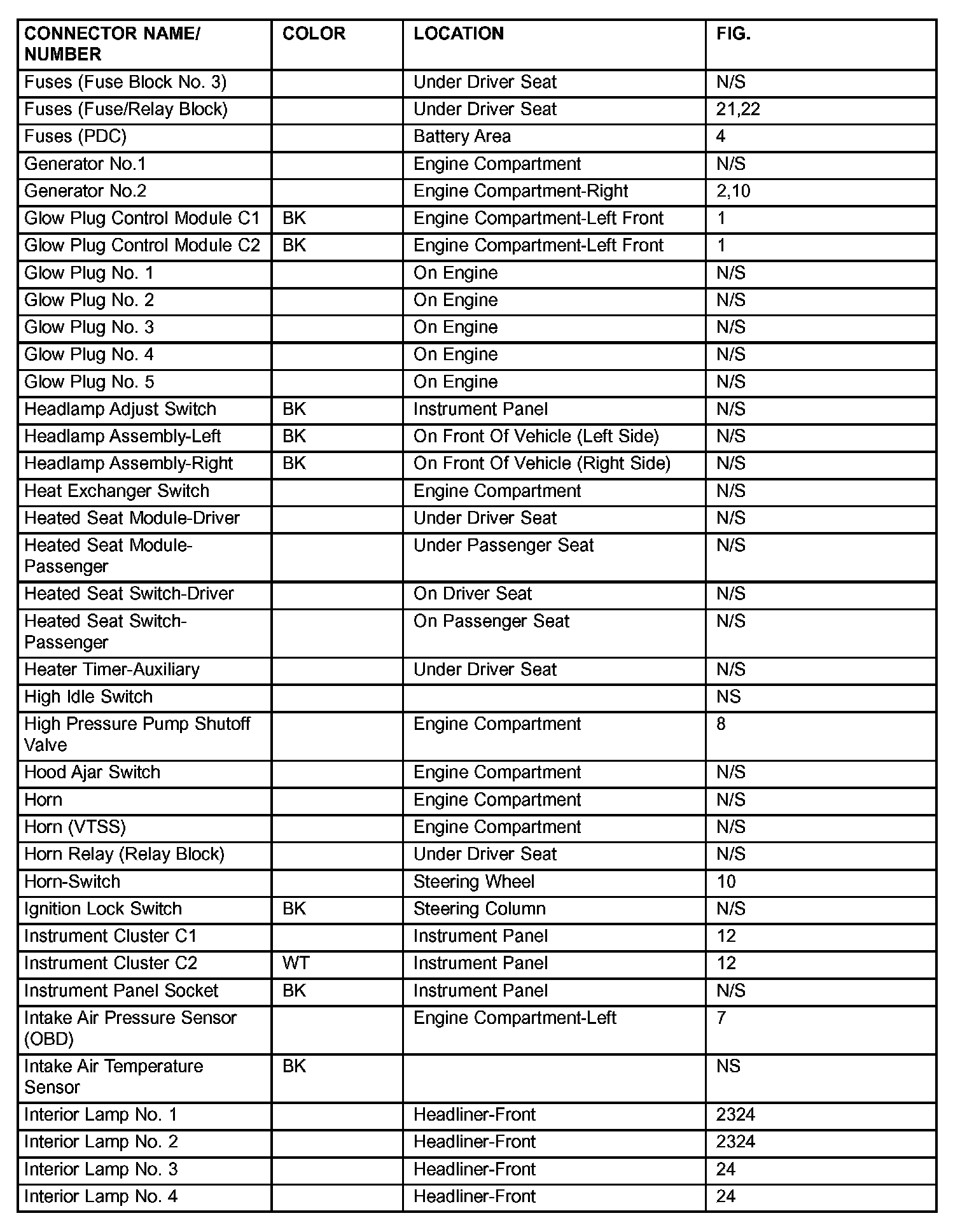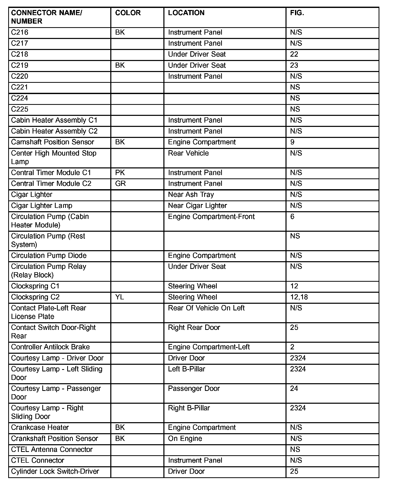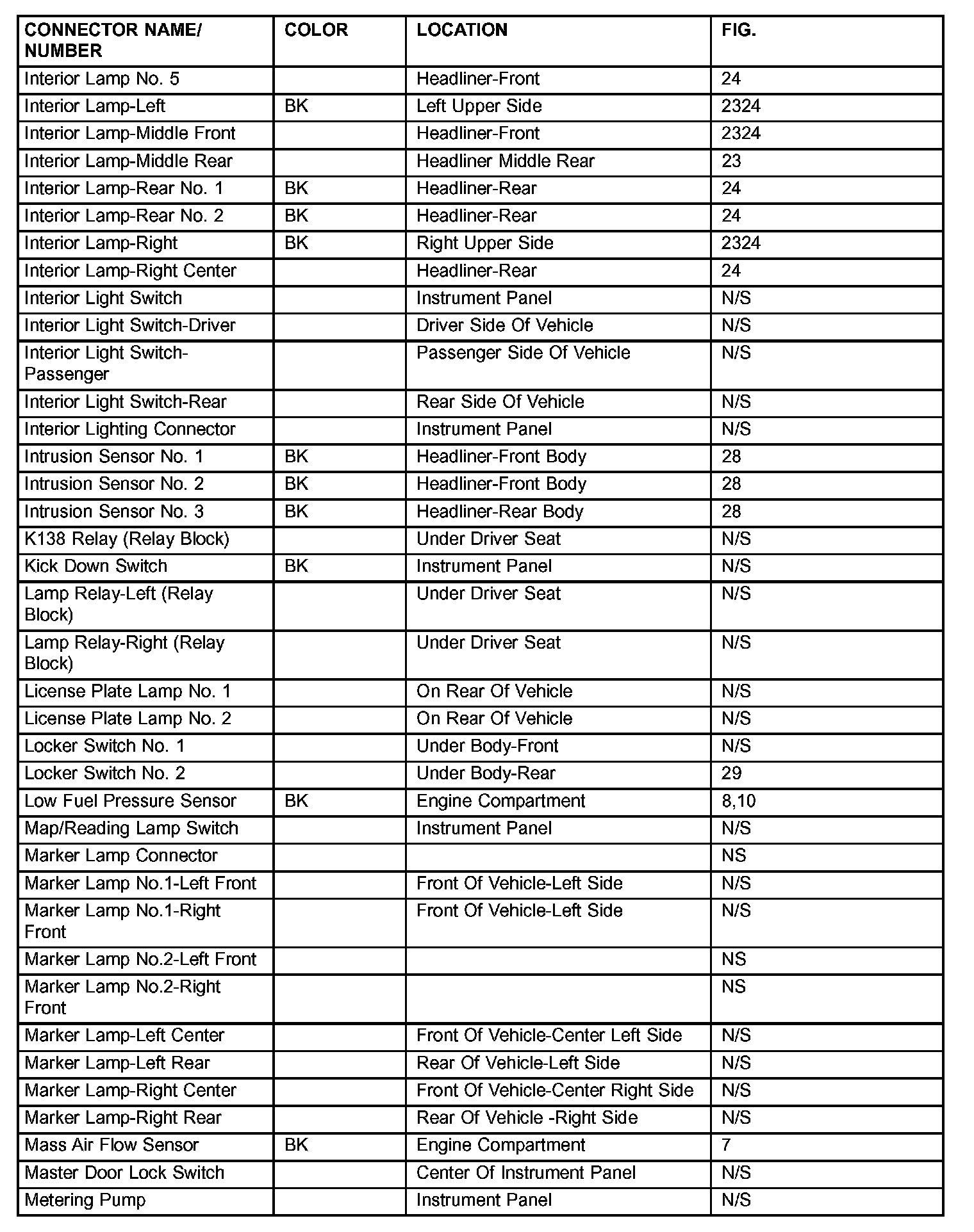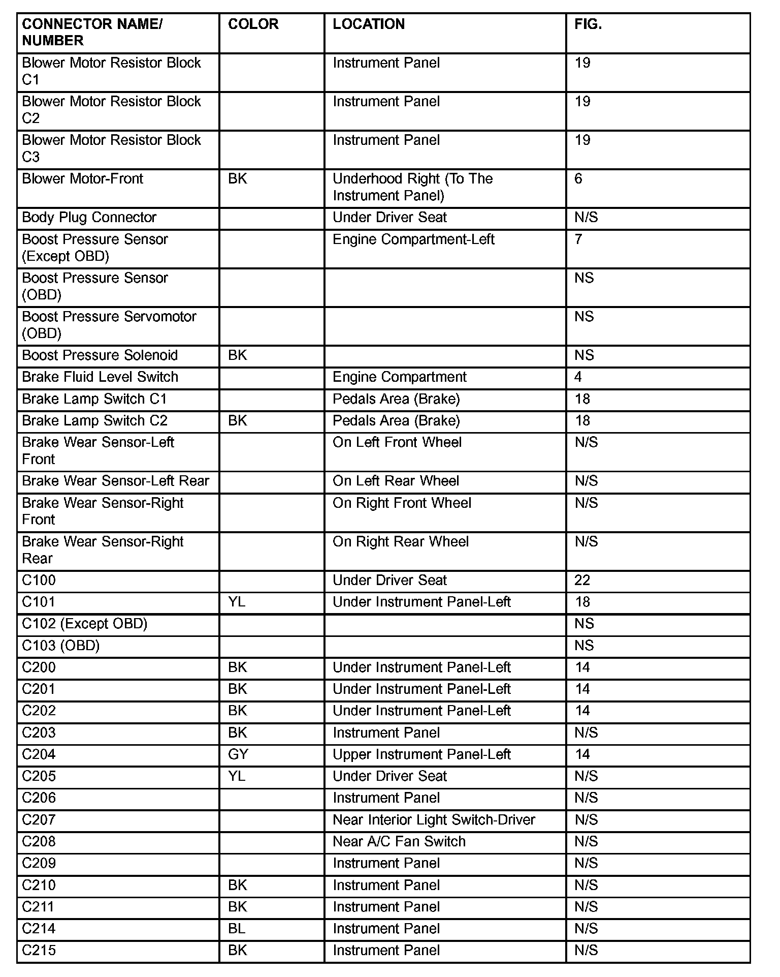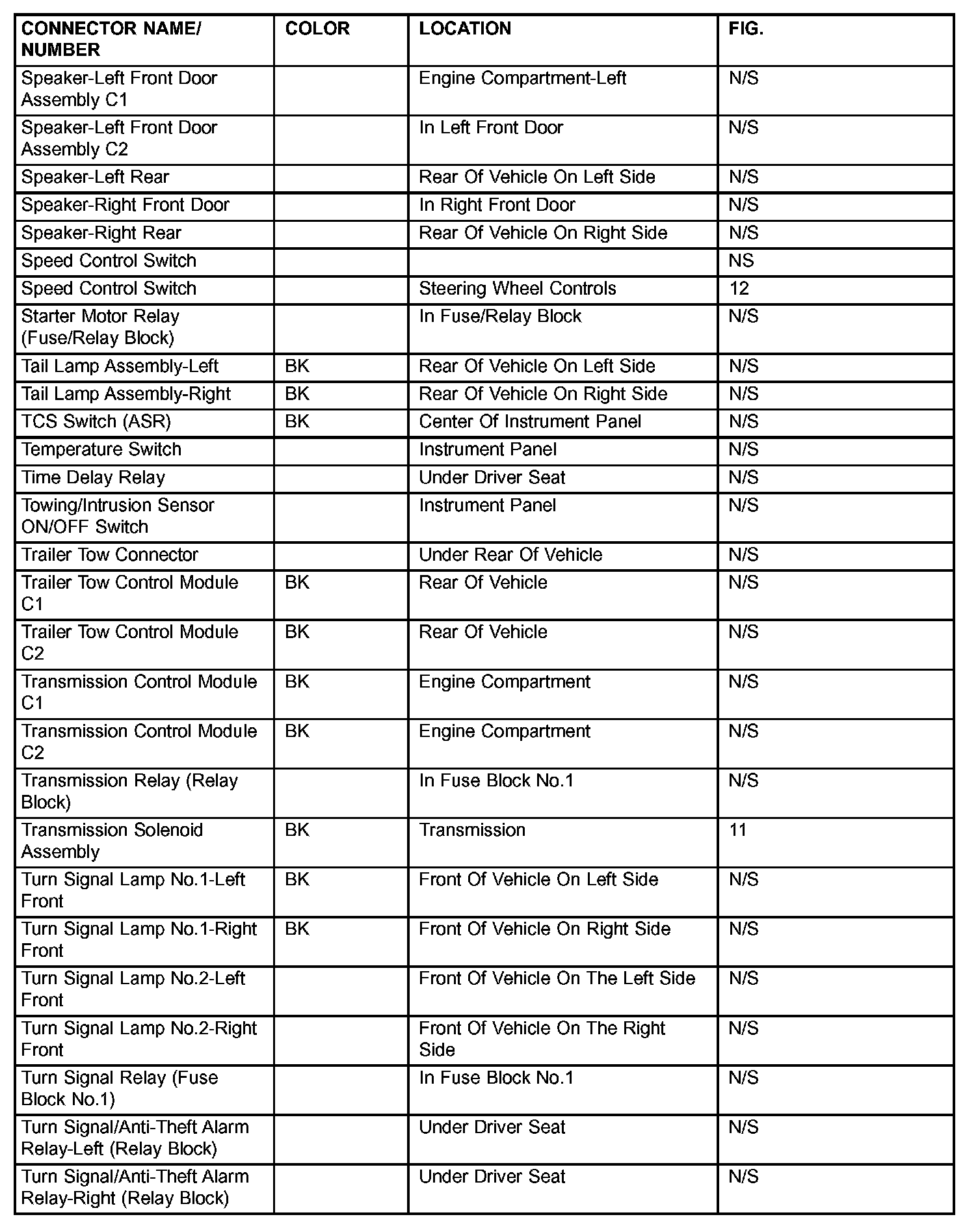 PLEASE NOTE:If a link on the index chart to a figure is not provided, that means that the connector and/or figure in question does NOT apply to the vehicle model selected.