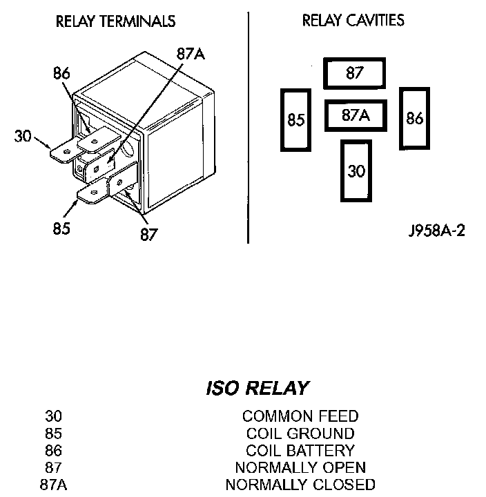 The relay is a International Standards Organization (ISO)) relay. Relays conforming to the ISO specifications have common physical dimensions, current capacities, terminal patterns, and terminal functions