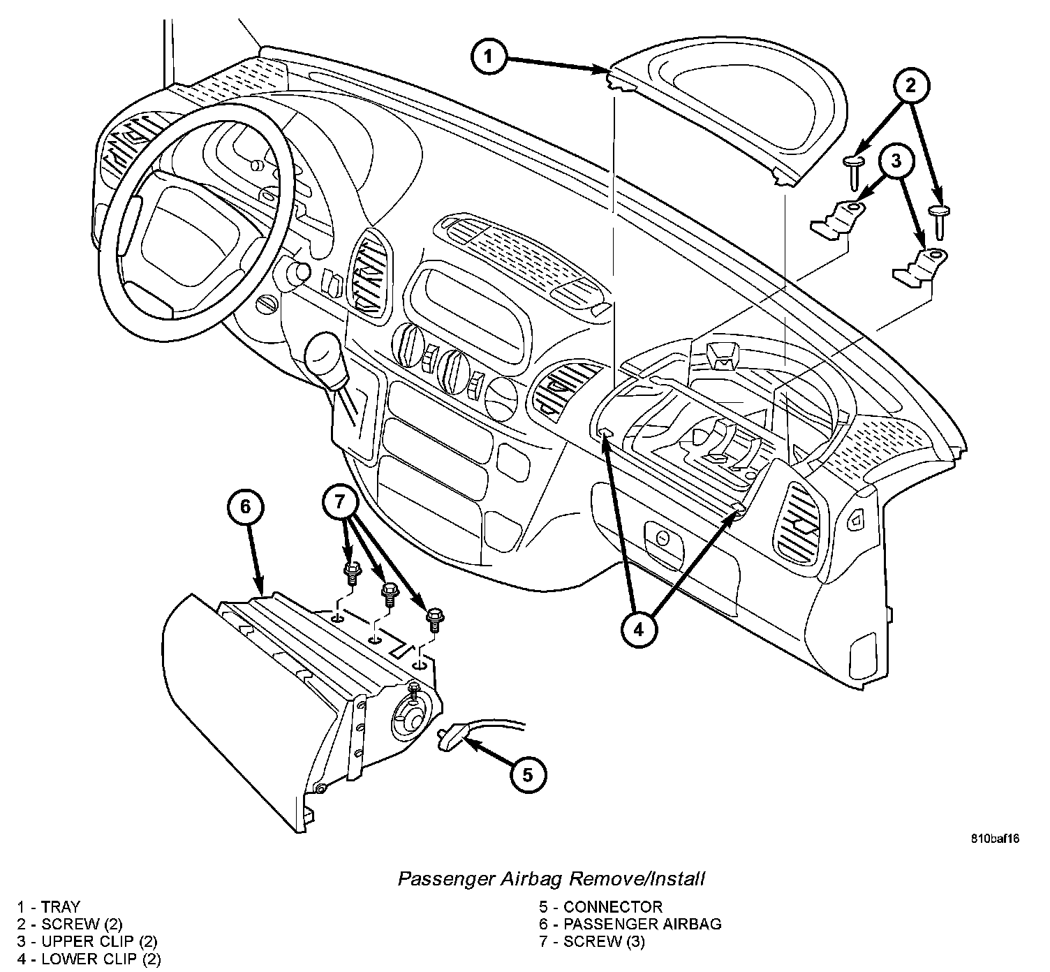7. Remove the passenger airbag and airbag door from the instrument panel as a unit.