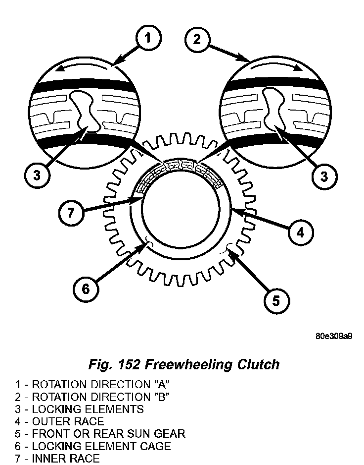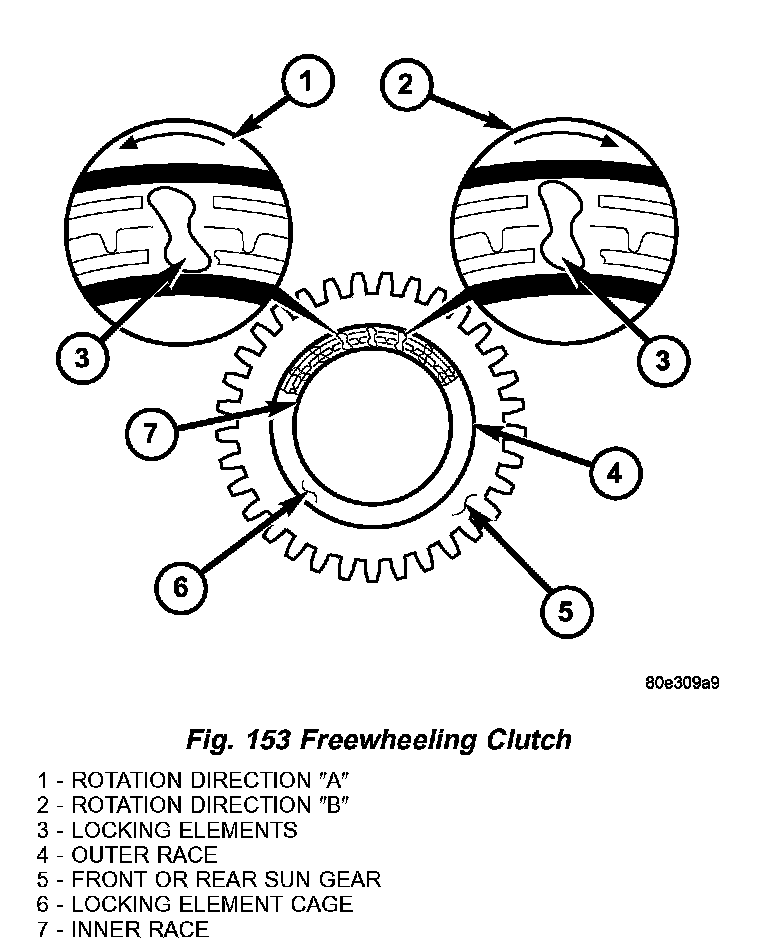 The freewheeling clutch (Fig. 153) optimizes individual gearshifts. They lock individual elements of a planetary gear set together or against the transmission housing in one direction of rotation to allow the torque to be transmitted.