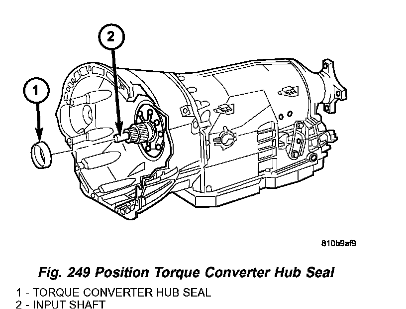 1. Position the torque converter hub seal (1) (Fig. 249) over the input shaft and against the transmission oil pump.