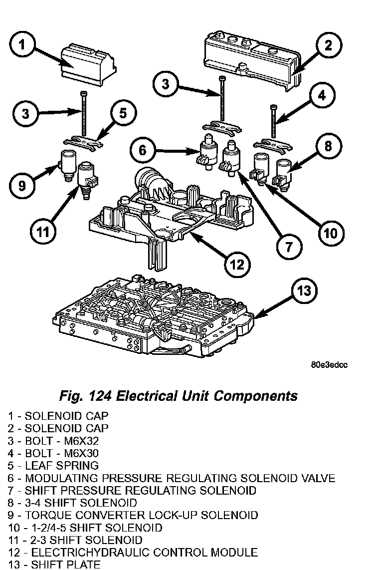 2. Remove solenoid caps (1, 2) (Fig. 124).