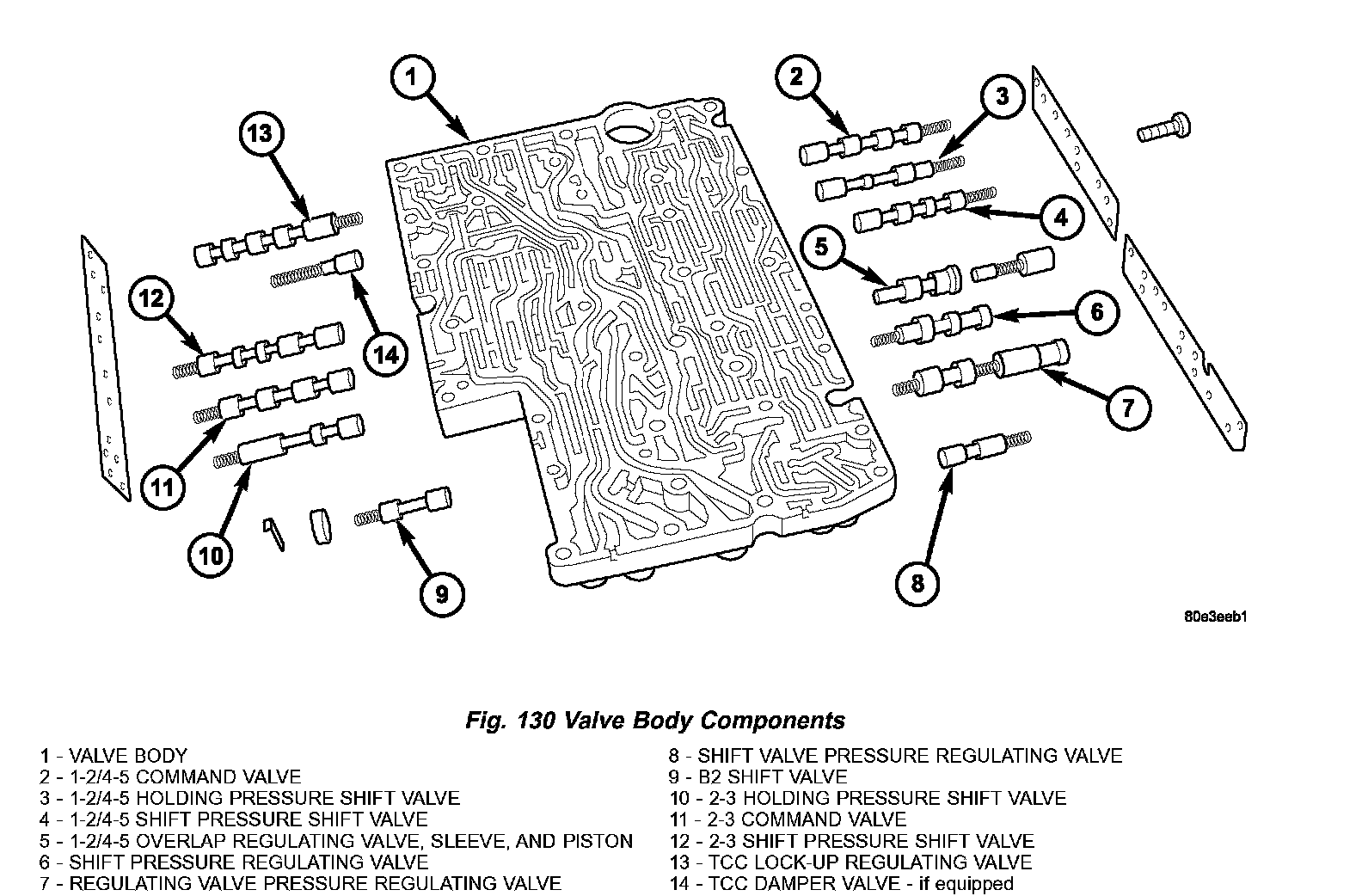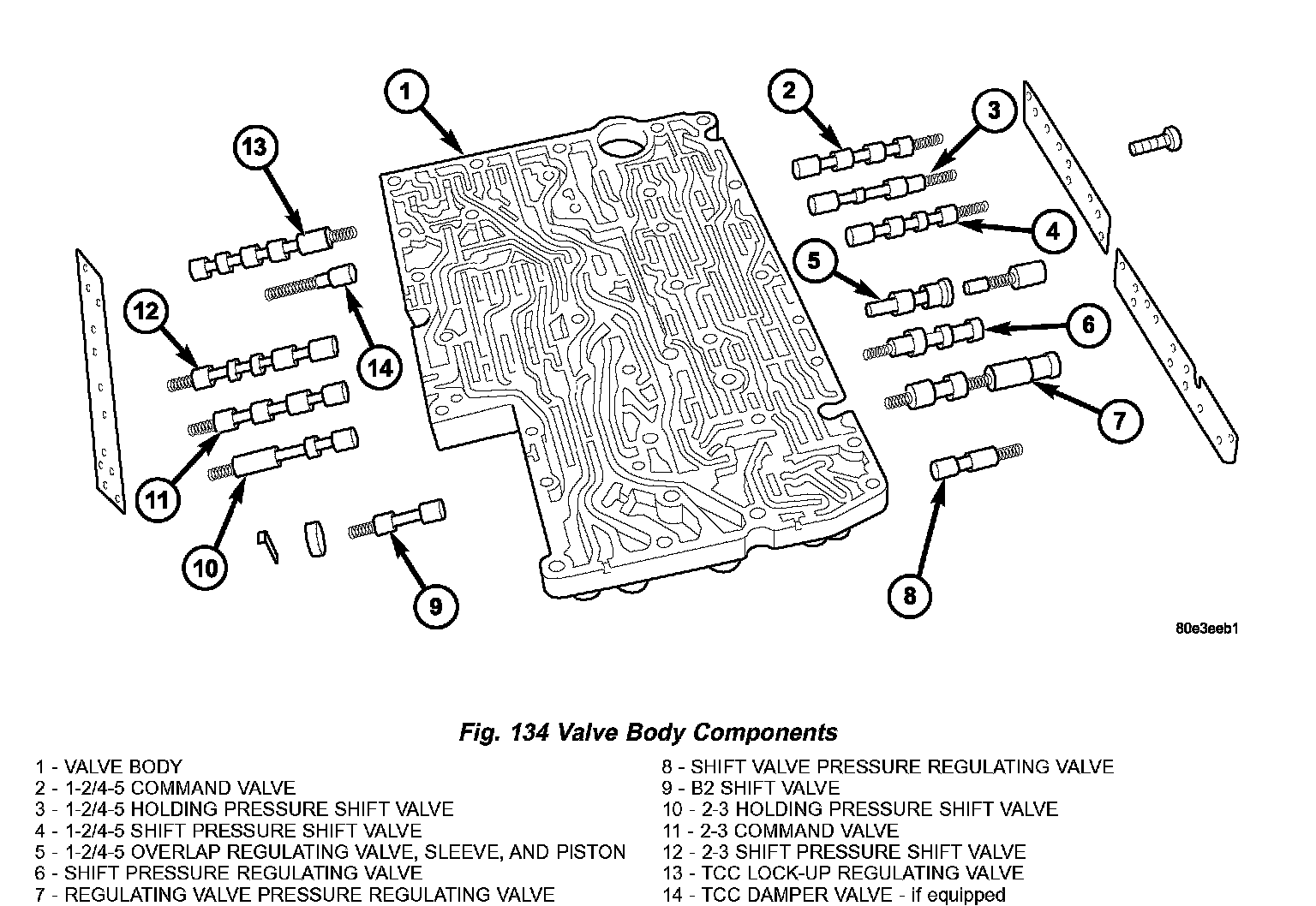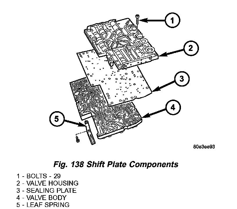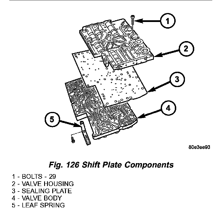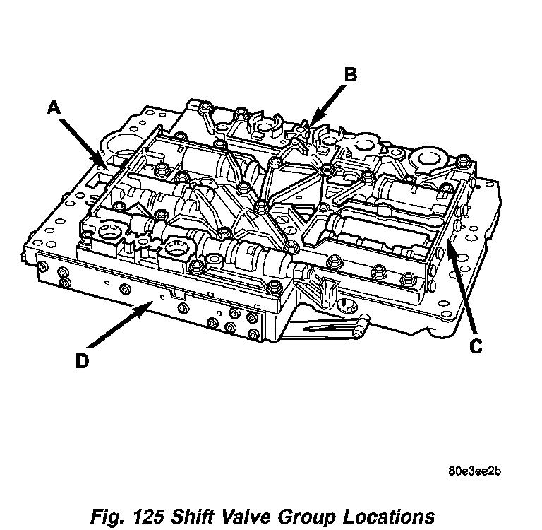 8. Note the locations of the major shift valve group components for assembly reference. (Fig. 125)