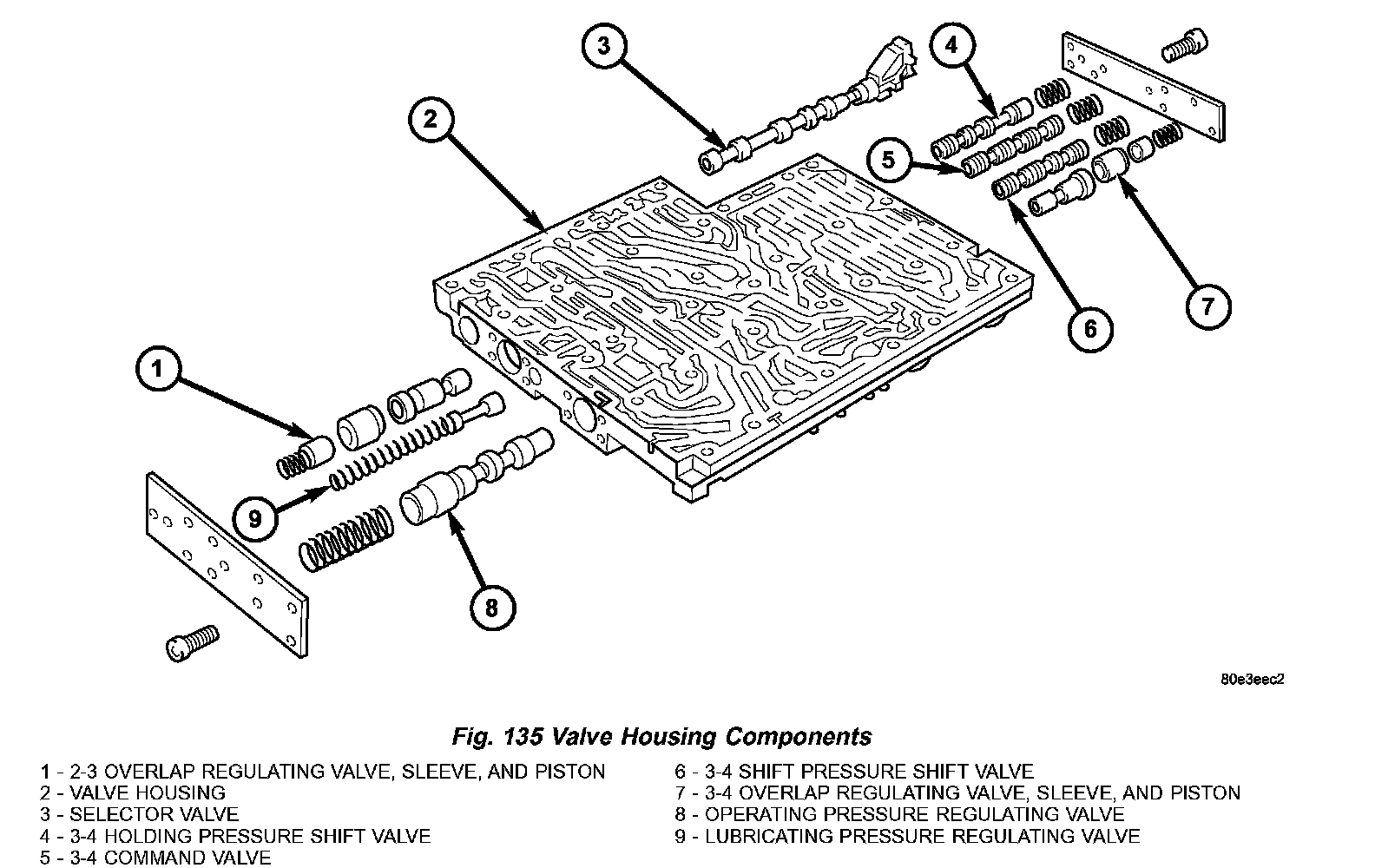 4. Install all valves and springs into the valve housing (2) (Fig. 135). Check all valves for ease of movement and shavings.