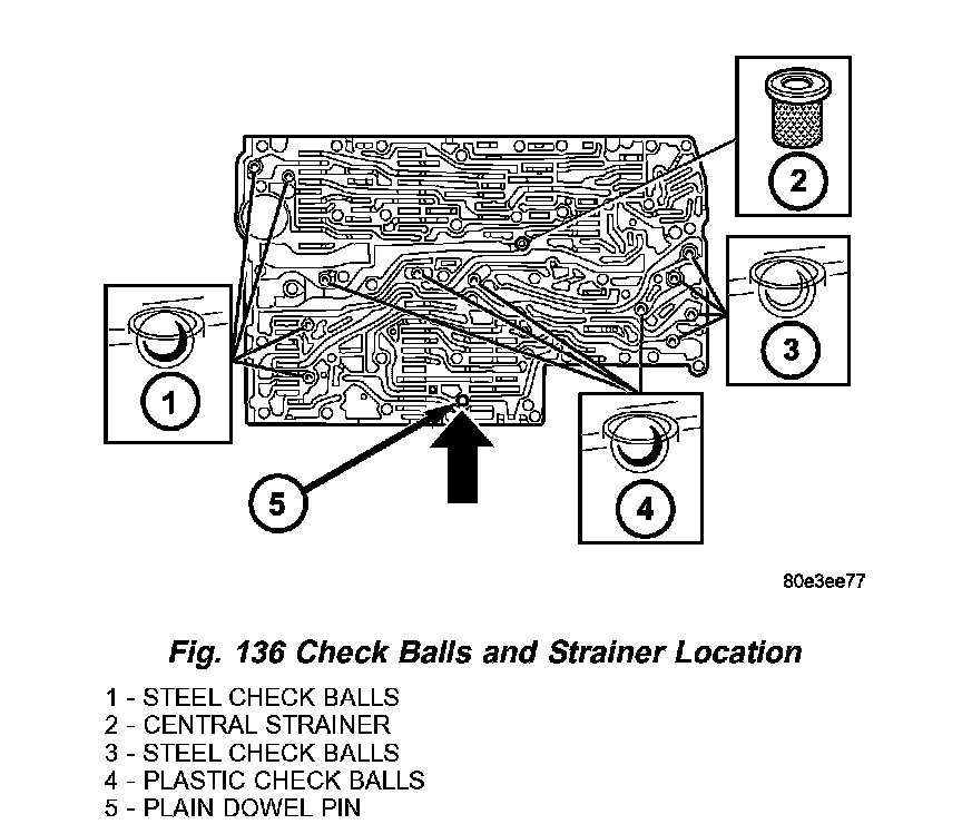 7. Install the strainer (1) (Fig. 137) in the inlet to torque converter lock up control solenoid valve.
