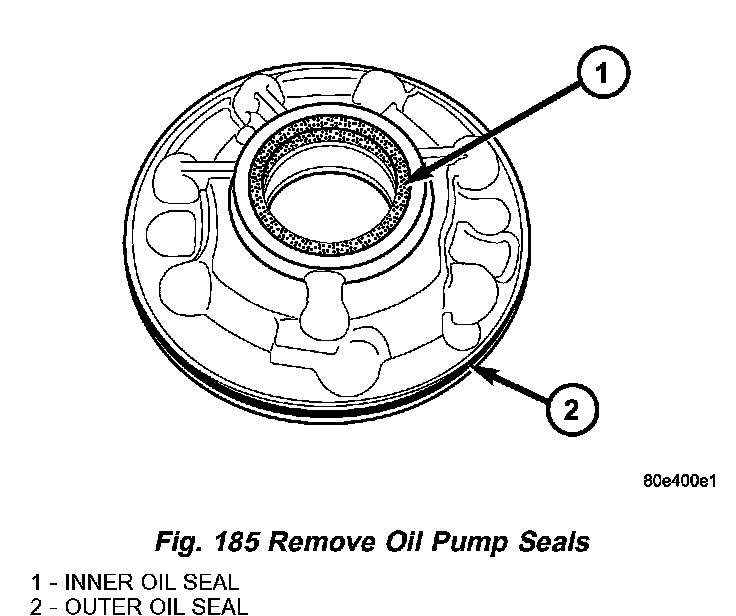 2. Remove the inner oil pump seal (1) (Fig. 185).